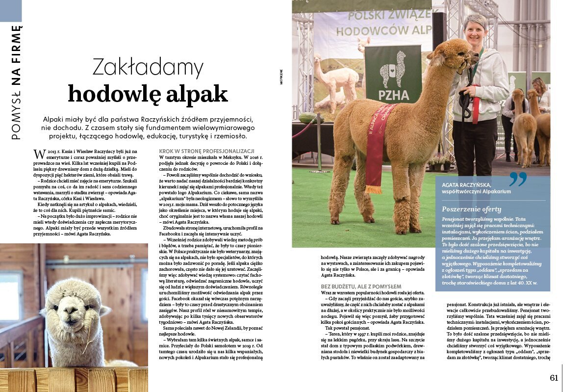 Alpaki miały być dla państwa Raczyńskich źródłem przyjemności, nie dochodu. Z czasem stały się fundamentem wielowymiarowego projektu, łączącego hodowlę, edukację, turystykę i rzemiosło.